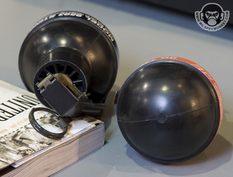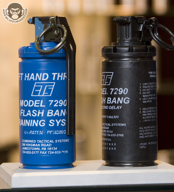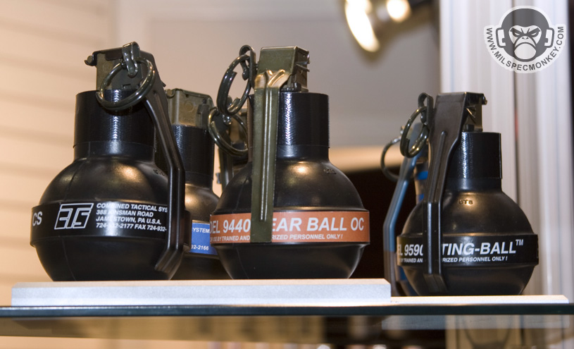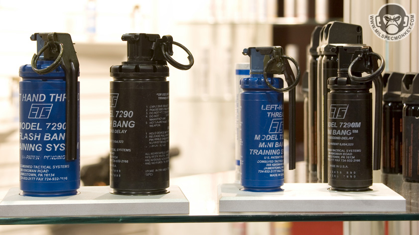 Gave these guys a media bugging right at the end of shotshow while they were packing up. I was foolish not to take pics of their 40mm launchers. As you can see they carry a vast range of less lethal products and their training counterparts. One thing I had not seen before was the mini-bang. They have the same qualities as a full flashbang, however smaller and 30% lighter. Fits in 40mm shell loops and some double mag pouches.