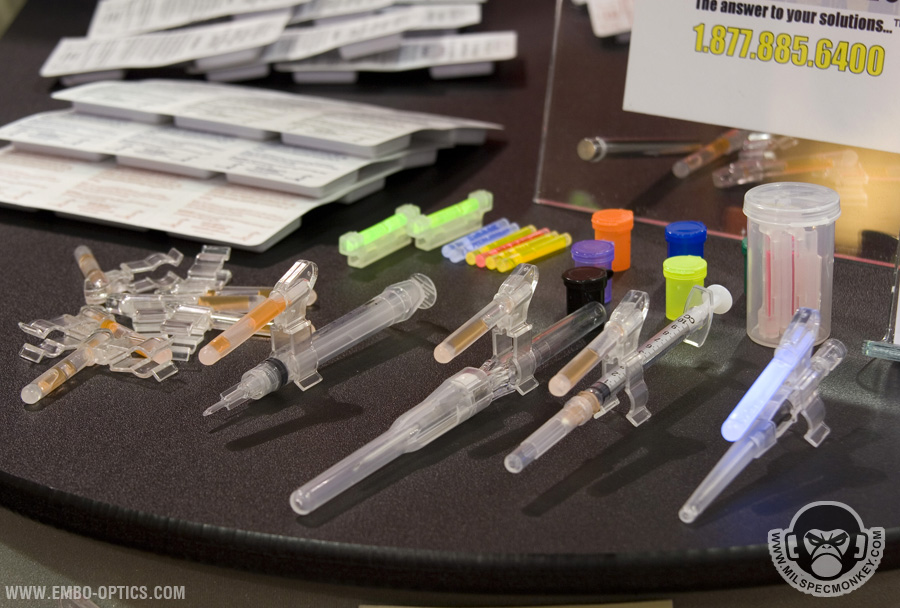 These guys graciously hooked me up with a letter so I could finally do some video at shot show. I spent DAYS calling people pre show and no one would write me a friggn' letter. Enough bitching, Embo-Optics brings some unique medical products for performing aid tasks when light discipline is critical. These are a little harder to explain in a short paragraph so please view the video demo: