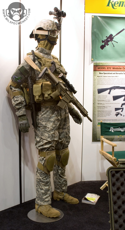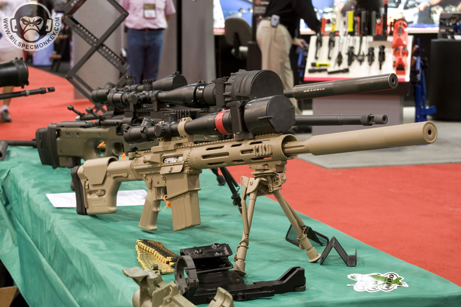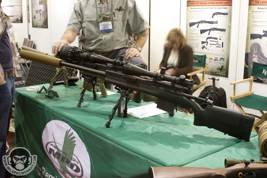 They had a tough looking set of their sniper rifles on display, but my favorite has to be the 870 MCS (Modular Combat Shotgun). The full kit allows one to go from classic stocked shotgun to shorty breaching weapon and then even to a M4 "master key". Stocks and barrels are able to be changed quickly and with no tools.