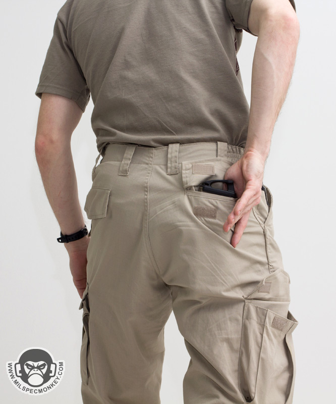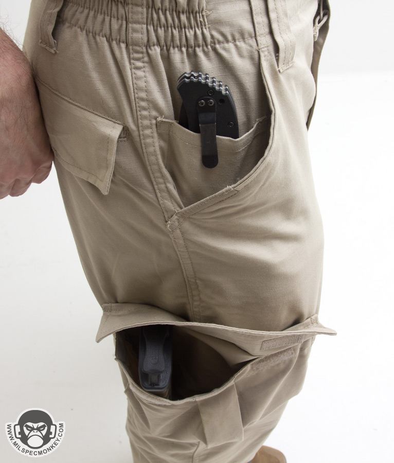 -Took forever to get these, but finally got them in recently. I'll be beating up on them so I can give a more thorough review, till then here are some first impressions. I enjoy the nice big side pockets and I find the back pockets to be an improvement over the CP style ones with a bonus pull tab and uses 2 pieces of velcro rather than 1. The double way zipper is clearly a win for droppn liquids on demand.
