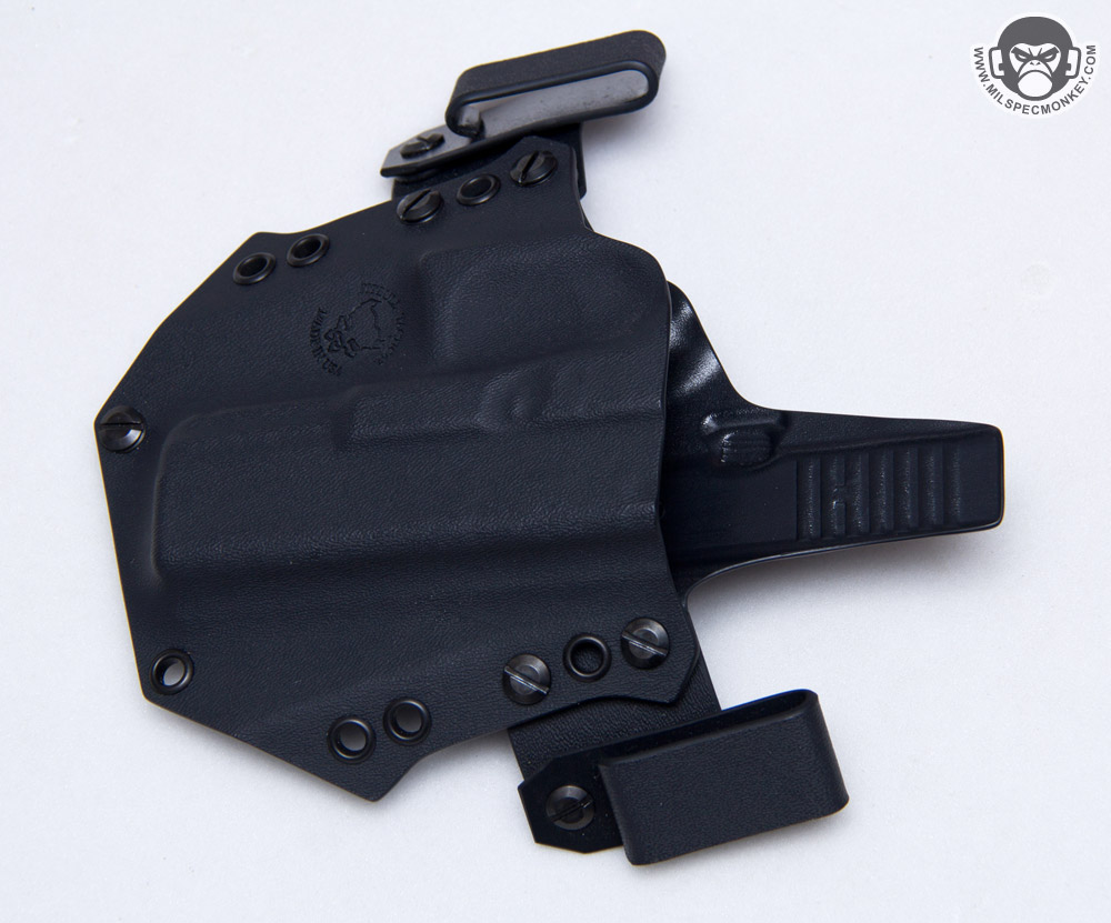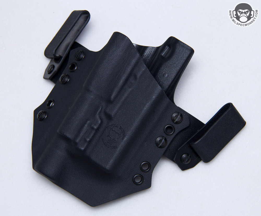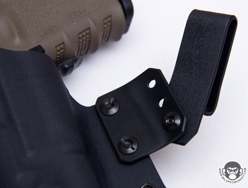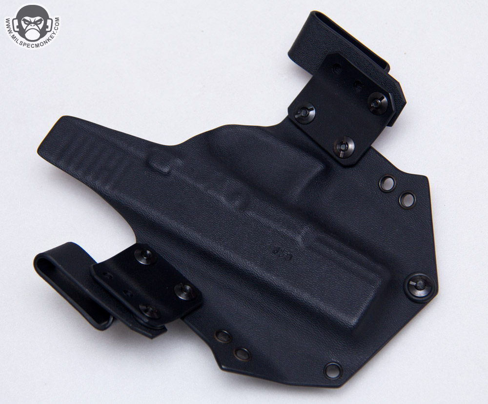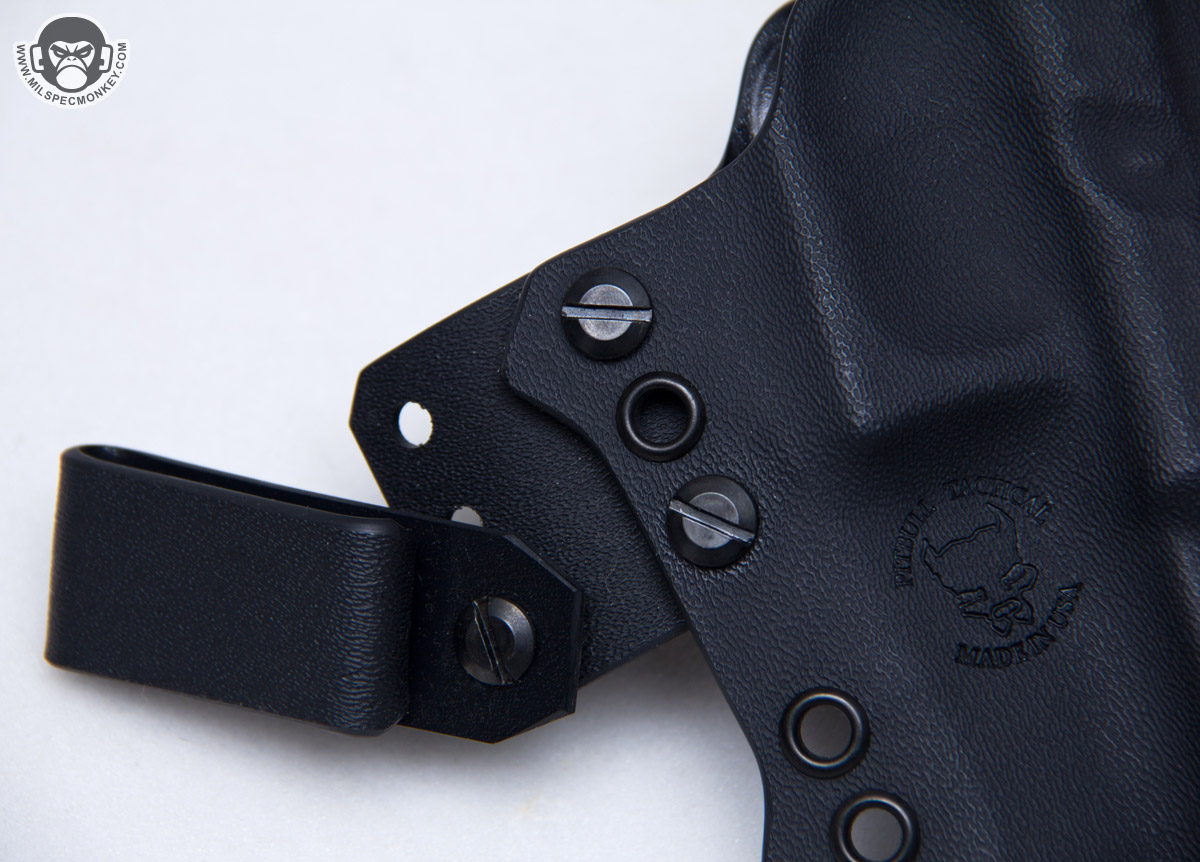 There is a lot of decent kydex out there so always nice to see a company keeping things fresh with new ideas like Pitbull Tactical. Their main product has been the Bloodline holster line in which the latest generation has some pretty sweet features. The general size and shape of the Bloodline is about what most would expect a modern kydex holster to be, however the hole placement and clips hardware offerings allow for not only height adjustment, but cant (angle) adjustment, and the ability to convert back and forth from OWB and IWB setups. (OWB = Outside the Waist Band and IWB = Inside the Waist Band)