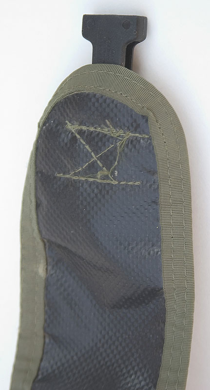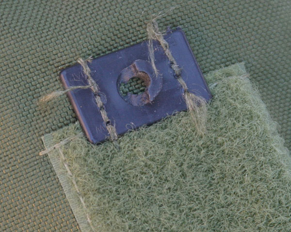 A solid and affordable cover here. Made of 50/50 NYCO makes the material a good compromise of lightweight and durable. The front has a button stitch for an NVG screw hole. The cover comes with this area intact, so just cut er' open when you need to screw on your NVG mount. Reinforced holes are in the back for goggle loops and of course holes for the chinstrap system. The exterior holes, typically for foliage placement, are not present likely to cut down on the cost and they are rarely used.