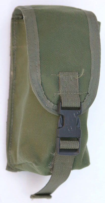 Notes: Pouch for holding 200 round SAW drum or 150 linked rounds of 7.62. This version is an older one, latest one appears to have more velcro coverage. Plastic reinforcement appears to deform when not used for intended purpose. This pouch was the first time I saw the velcro null system. Malice Clips included.