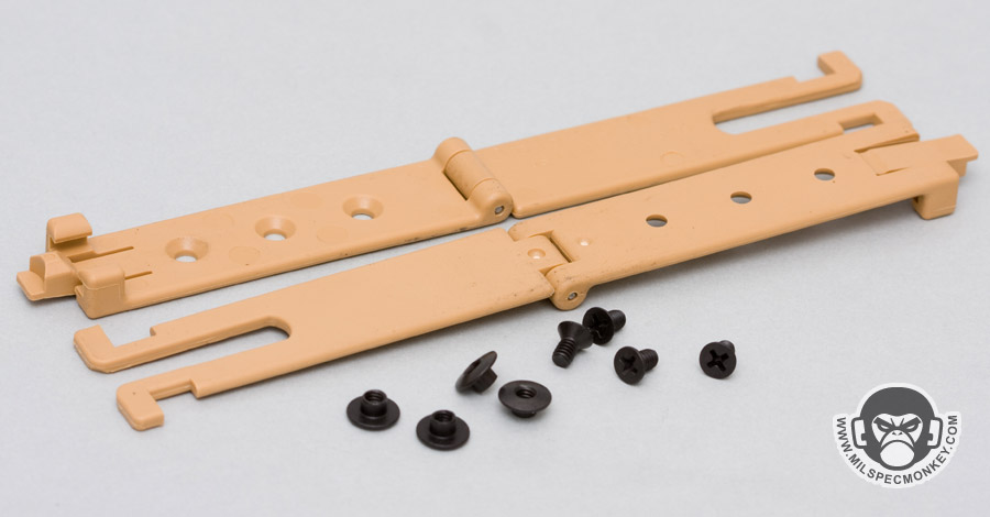 Ol' Blade-Tech took a pretty heavy duty approach and made these MOLLE LOKs. They are pretty darn rigid so I'm not sure if they ever intended the user to weave them. Due to this, the screw holes can be used for solid mounting points. As a bonus, the screws are even included. The end locks up pretty nice and secure. To release, it requires the middle area to be pushed down and the sides to be pushed in to clear the side hooks. This gives Malice clip like security without requiring some form of poker tool. I'm curious about how the middle hinge will stand up over time, but overall the MOLLE-LOKs are heavy duty and can take quite the beating. They are available in 2 sizes which are the equivalent of Malice short and long. Offered in Black, Foliage, and Tan colors. The main down sides are that since so stiff, they are really hard to weave and are the most expensive option out there currently.