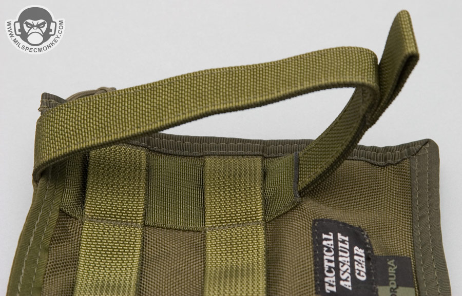 Tactical Assault Gear uses a similar soft snap as Paraclete (licensed), however adds an extra webbing fold to increase security. This way if enough force is ever delivered to rip the webbing out of its pocket, the extra webbing fold will snag on the PALS webbing.