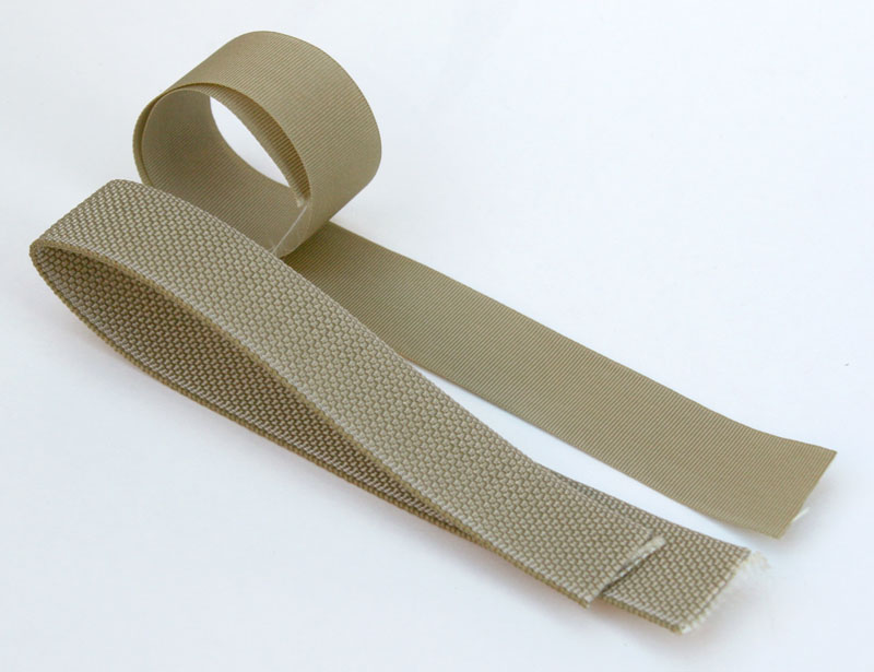 Lowy USA has a great webbing type and color selection including some of the harder to find webbings such as scuba and seatbelt types. The Coyote 43668 1" was a bit saturated/golden, but overall good stuff.