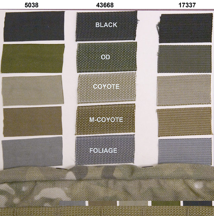 This area is for general military style webbing information including specs and color examples.