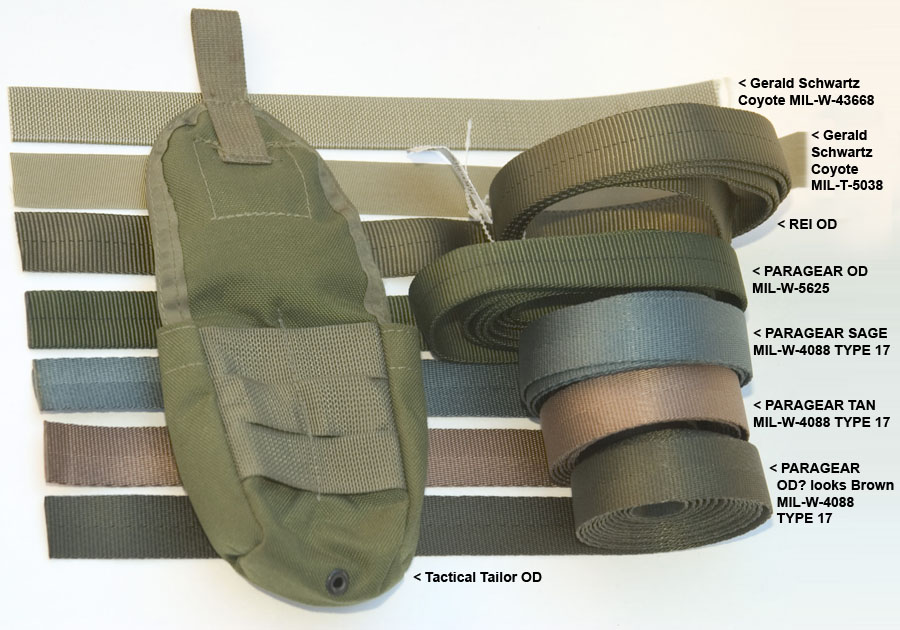 DIY Tactical webbing examples: They even carry the hard to find Ranger Green. Great place for small/medium webbing orders. <www.diytacticalstore.com>