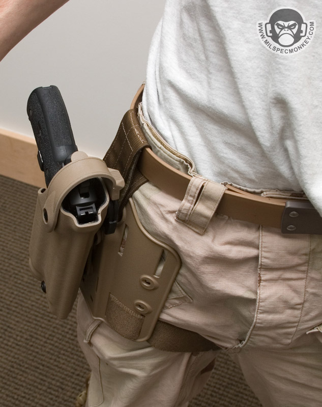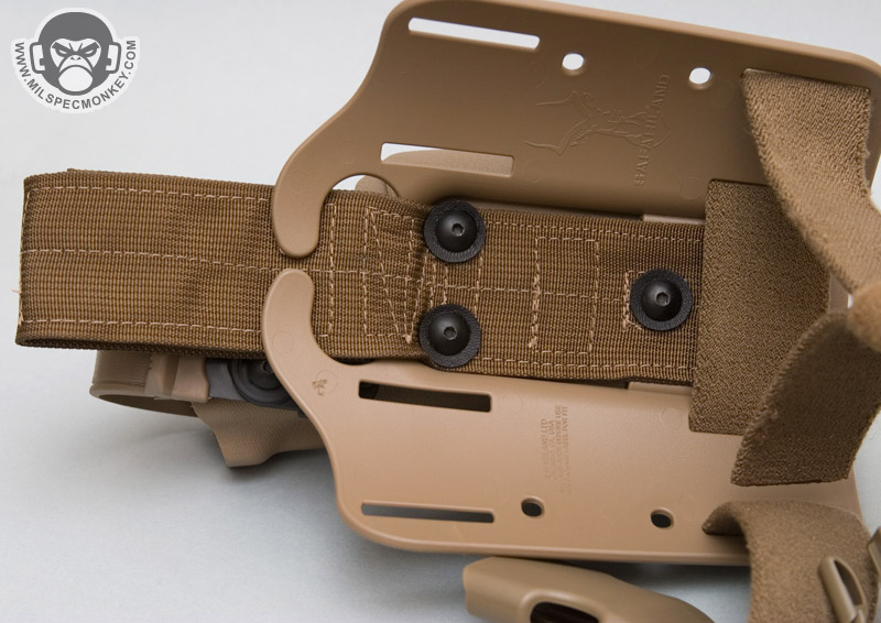 Due to being <monkey> Sized (5'4" 125lbs) Most drop legs were not made with me in mind and have long connection straps. This causes the drop leg to ride low and hit my kneepads and generally be lower than I'd like. Some other dropleg designs addressed this by adding webbing on the back of the drop leg to mount it to one's belt. Sure this works at getting a high ride, but then you have to bend the whole dropleg just to move your leg.