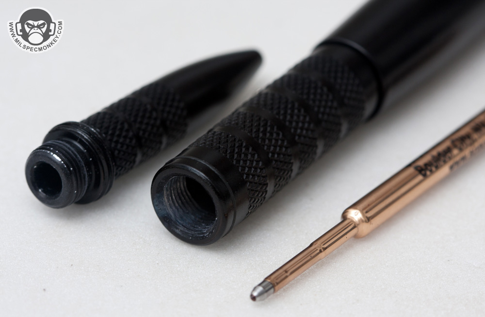 The core features stayed the same so I'm gonna copy a paste a bit: The clip is still made of heavy duty spring steel with rowdy chemically welded bolts. In summary I won't be worried about that breaking off anytime soon if ever. Functionality wise it has good tension and the raised end lip makes it easy to mount. The cartridge is the same ones used in those cool guy space pens so they are pressurized allowing the user to write upside down and in extreme temperatures. They are affordably replaceable whenever you do run out of ink. The exterior finish is pretty snazzy and so far has been very scratch resistant. Although the finish isn't super flat matte, it is non-reflective and won't take on fingerprints. A lanyard hole is in the cap to allow your favorite cord to be added if a connection point is desired. As with all the Tuff-Writer pens so far, the kind of user they attract are those who like things super simple and heavy duty. As a self defense tool it may not be a knife, but a poke anywhere with this thing will get a bad guy's attention. For those trained for it, the Operator pen is long enough for hand and arm trapping techniques. The tip isn't made to be a specialty glass breaking device, yet it will get the job done all the same when it comes to busting windows.
