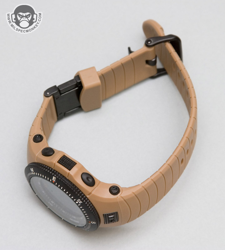 The ballistic calculator is extensive allowing input of: • Temperature °F/°C • Altitude (Metric & US) • Height Above Bore • C1 Ballistic Coefficient • muzzle Velocity • Zeroed Range • Wind Speed • Wind Direction • Target Range • Inclination Angle • The firing solution may be displayed in MILS, TMOA, SMOA, or in number of CLICKS. Core features are: Chrono includes three time zones, alarm, stopwatch, countdown timer and day/date displays. To use with the compass, a turnable bezel with directional markings is standard. Although the watch is already big enough to accomodate most people with or without gloves, a quick release band extension is included. I only see the band extension being used on large people with cold weather gear on, but it is a nice accessory to have standard. The strap has a nice metal quick-side-release system and the pieces can be attached correctly or reversed. The core strap to watch connection is heavy duty with hex screws. Even the case it comes in is pretty swank and the instructions are well done. I have handed this one off to one of my SF buddies for a propper beating. I hope to keep you updated soon on ease of use and general handling.
