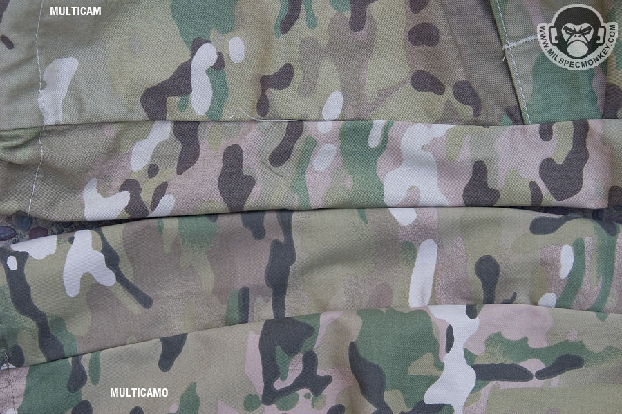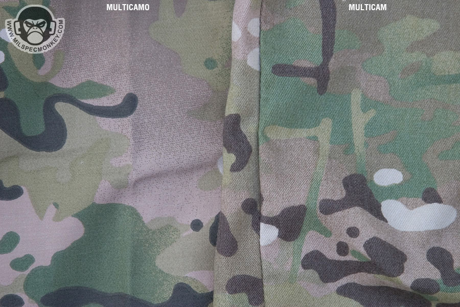 -While here I bet you are wondering what the difference of this so called multicamo is from multicam. I don't have a huge swatch, but I did see key patterns that hint towards a near exact copy rather than a remix. Upon first view, the multicamo is a little more saturated and just looks "new". After a couple washes, I bet the colors will be extremely similar. You can't tell unless you are about 2 feet away, but other notable differences are that the multicamo fades are a little more "dotty". Also some parts have edge halos of color change in which the dark browns can get a little lighter and the greens can get a little darker.