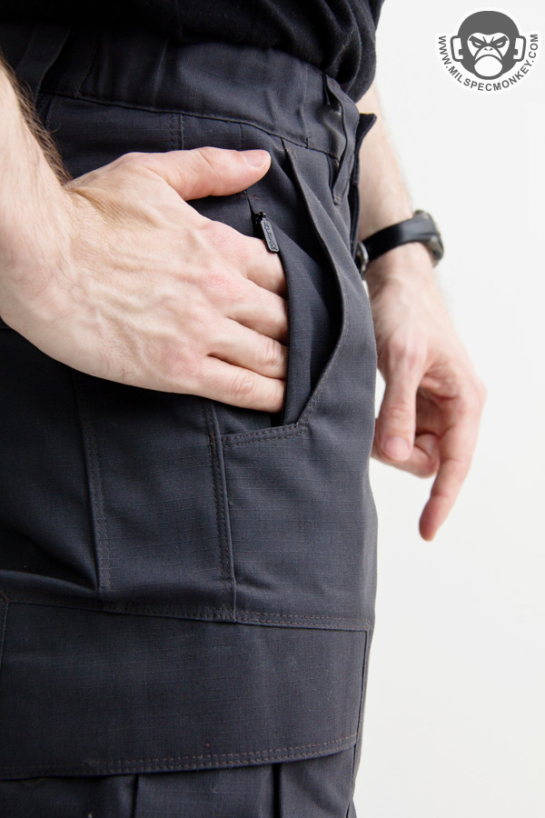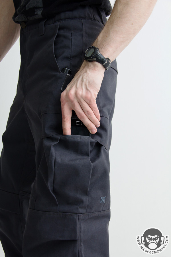As another variant option, Vertx also offers the Phantom OPS pant than leans just that slight bit more on a duty style pant. Being very similar to the LT pant, it uses the same core material with the main differences being pocket types. Now both hand pockets have the sneaky zipper pockets and a stash pocket for items like flashlights and knives has been added to each side as well. This stash pocket is a bit on the smaller side so I'm just able to fit my not particularly big Gerber SAH in there; easy enough to extract, not so easy to insert.
