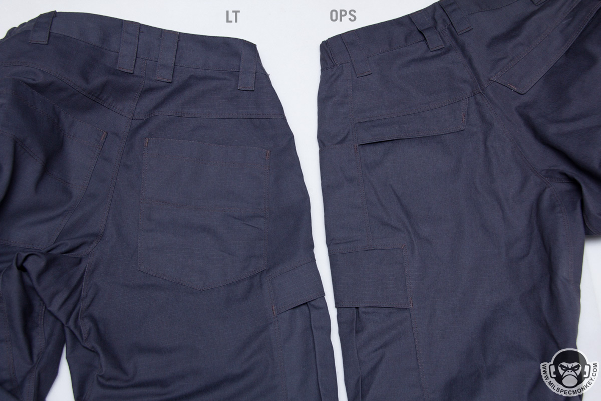 For general wearing observations both are overall nice since based on the original Vertx pants, yet I was a bit surprised that leg lift movement was easier on the LT version than the OPS version. My best guess is something to do with the cargo pockets, but I was perplexed they would feel different at all since the hips, waist, and crotch are all the same ballpark measurements. The cargo pockets even start at about the same distance down. So as a roundup I'd say I'm liking the LT version a little more since going with the strengths of the low key visuals and feature balance of the original pants, however nothing wrong with the OPS version being offered for those who want more cargo pocket space and some bonus smaller pockets.