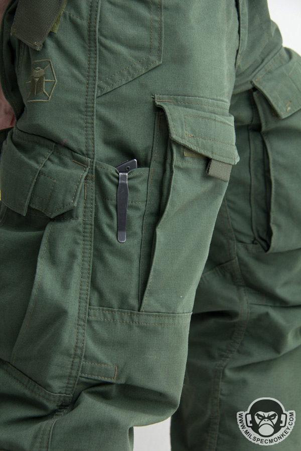 On the topic of pockets, there are a lot of them which I am always a fan of. Even when not doing tactical man stuff, having a good layout of pockets is still handy in everyday life. Starting with the side hand pockets, they have a good sized opening and reinforcements zones for knife clips. I'd like to see the reinforcement be a material more durable than the rest of the pant, but something is better than nothing. There are frontal thigh pockets which are always a plus in my book since can be accessed while sitting so I like to use them as my phone pocket. On the left thigh pocket is even an internal sleeve to keep smaller items secured and not floating in the pocket. The flaps on these pockets have a good dose of velcro, I added 1" loop squares to mine to make them easier to open with one hand, but it is nice the higher security option is there. For a small detail the hook side is on the pocket while the loop side is on the flap which is different than the norm for tactical items, but no matter how one does it there are pros and cons to going either way.