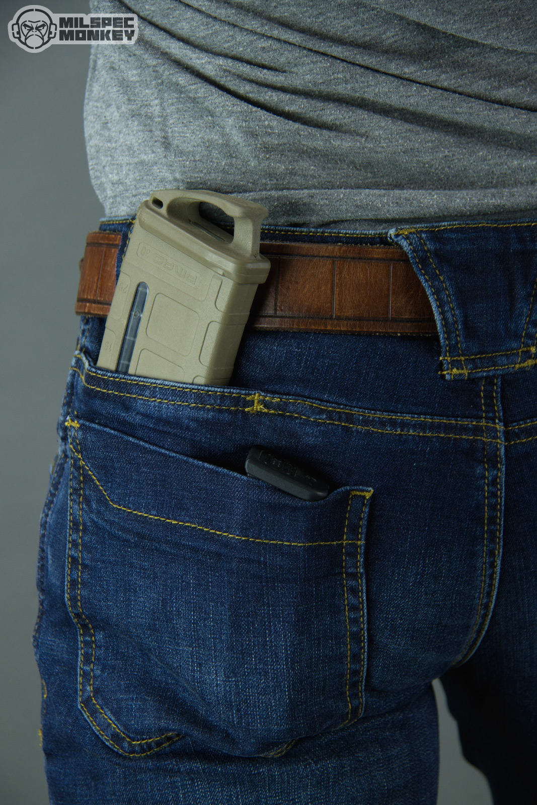 The main back pockets are reasonably sized, also able to hold pistol or rifle magazines. Easy to overlook, additional back pockets exist to the upper side of the main ones (some might call hip pockets) which look even more sized with rifle magazines in mind. The belt loop spacing is reasonable and I like the look of the big centered back belt loop. It looks nicer than say 2 normal loops next to each other, and this is also where the 9th pocket comes in offering a little stash pocket. The size is about right for a key, but I'd have some concerns if you find yourself ever up-side-down, items might fall out.