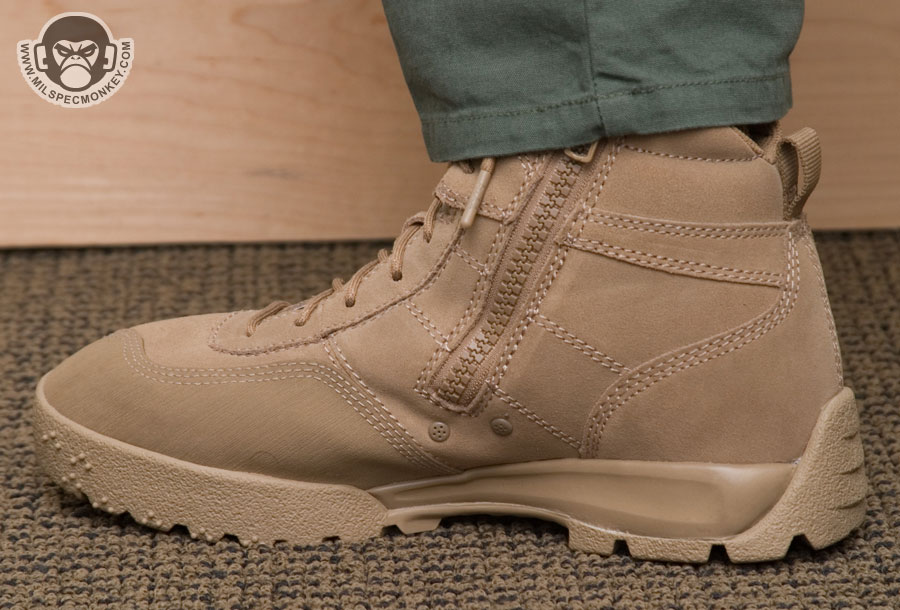 Based on the HRT design, this is a nice mid-height variant. The usual fancy 5.11 materials are used being lined with Coolmax® and Drilex® including a Suede and nylon upper. The end result is a good middle ground of a pretty comfy, but breathable boot. The laces and sole appear to be the same as the Urban HRT boot, but the zipper is one of the features unique to the HRT line that makes this boot the Advancer.