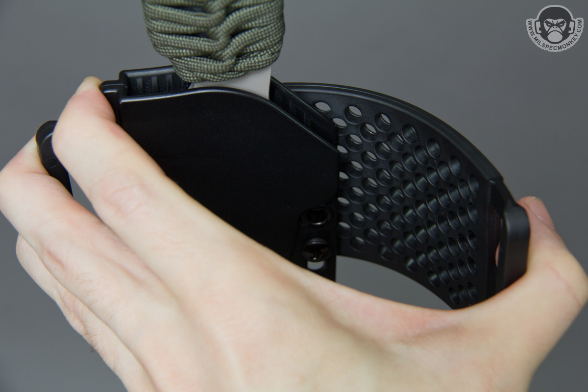 While mount testing I was overall pleased with the sheath compatibility since I was able to mount an assortment that had varied materials and no super standard screw-hole placement. I couldn't always get the exact angle or screw placement I wanted, but it tended to always been good enough. After the mounting was decided, the next step is actually getting it on a belt. The AMP flex seems not super hard to bend in hand, yet once on a belt it can seem a bit more rigid thus having a substantial duty belt can make curving it a little easier and even then the tightness of the belt is a big factor as well. A semi AMP down side is mounting to a belt isn't a super speedy operation where you have to do a bit of pre-planning on how to weave it through the AMP and your pant belt loops. In the grand scheme of things this is not super time intensive or "hard", just people don't always like to fuss with belt stuff when changing pants.
