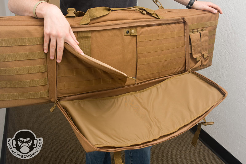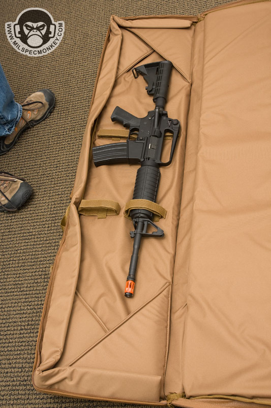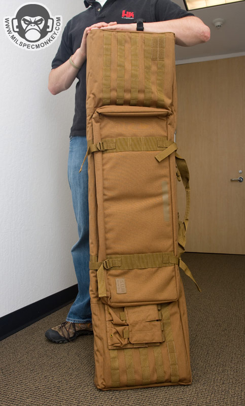 This is just a preview till I get a good long gun in there to beat up on it, but thought I'd spread the word. It is just like the 36" version shown earlier, but with more length. At 50" you can fit a M24 with supressor in this badboy. I wish the tie-down velcro loops were modular or there were more of them since guns can vary quite a bit. Luckily the ones in there make do most of the time. The case still even comes with 2 rifle mag pouches. I didn't "need" this offhand, but my LAPG buddies had it on a fire sale: