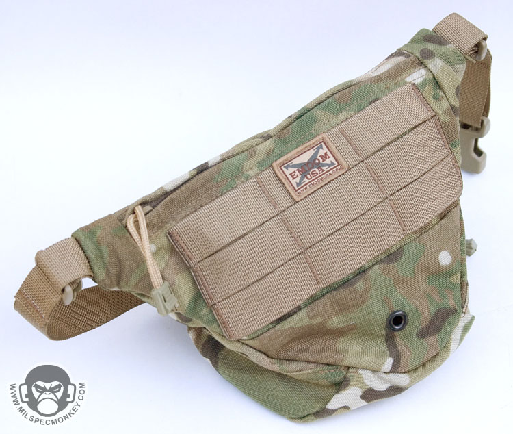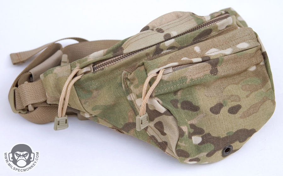 Fanny Packs, Waist Bags, Hip Packs...they come in many names and hit with fury in the 90s, but this one has a lot of nice MIL touches. In planning that the user wouldn't be a typical dad on a lazy vacation, the pouch is built to push the items away from your groin area to allow for greater mobility and prevent man part pounding.