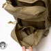 The bottom is actually quite plain, however this shouldn't be an issue as long as you don't use it as a drag bag. The top still uses the double zipper flap opening which works great for a quick wide opening. PALS webbing is even added to the hinge end just in case a small pouch addition is desired. Having the PALS only on this area rather than the whole top makes sense as the flap opening functionality would be cumbersome with pouches on the opening end. As a nice touch, tubing has been added to the zipper pull handle. Between the top and back sides are webbing loops with the intent to hold long full size flashlights or roll-up documents. Since I don't carry either very ofter I get frustrated with these straps since they get in the way of the zippers of the back pocket so I just can't wait to cut them off. As with most bags of this type, top carry handles are incorporated with a velcro strap to seal them together when desired. The shoulder strap is the usual from Maxpedition using plastic hardware, a tri-glide for length adjustment, and includes a velcro adjustable shoulder pad. Nothing new, yet a solid setup none the less. For additional changes all the hardware has been color matched which looks great and zippers are done reverse style for a more clean look.