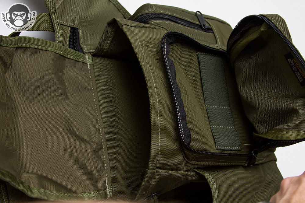 Another big change is the removal of the draw-string closure on the main compartment. Some will miss it as it help keep smaller items secure, while some will be happy to see it gone to have more snag free access. The CCW zippered compartment appears overall the same keeping a good size loop field in there; Great for compact or smaller pistols. On the frontal pocket the core is the same with the interior having divided elastic webbing rather than a sleeve divider.