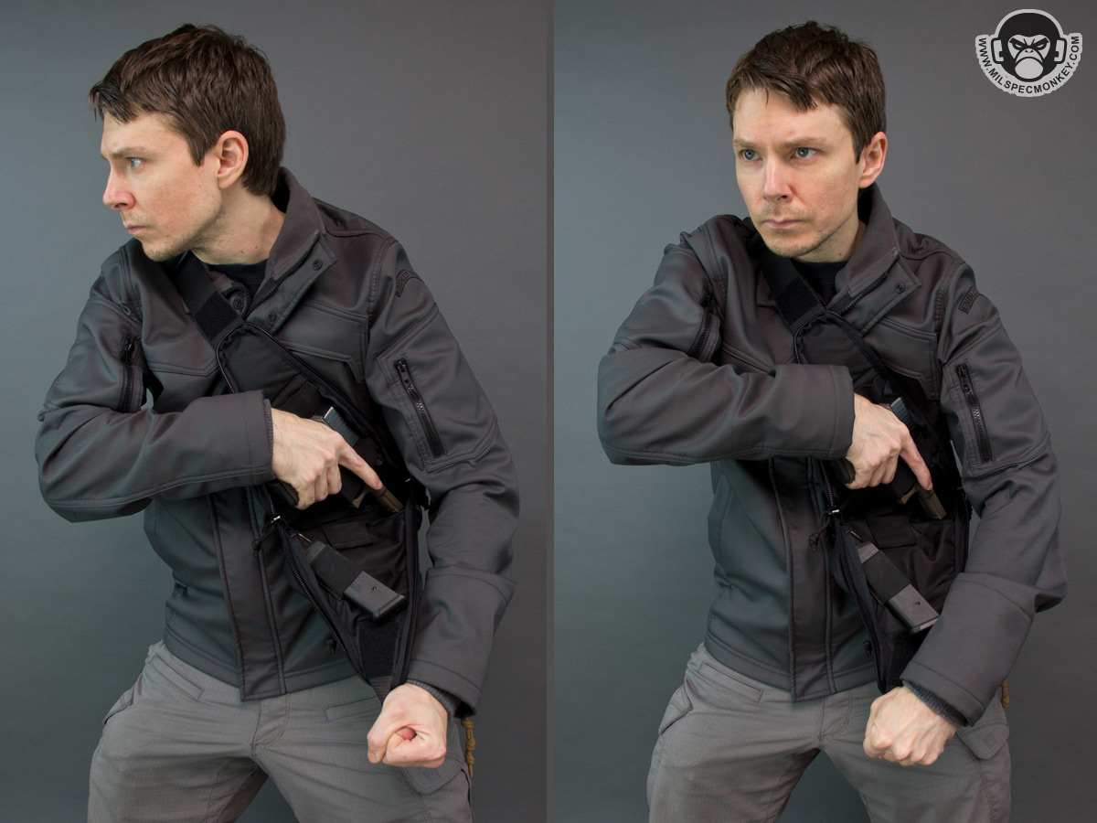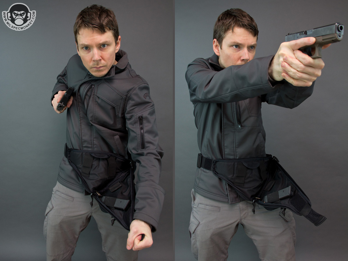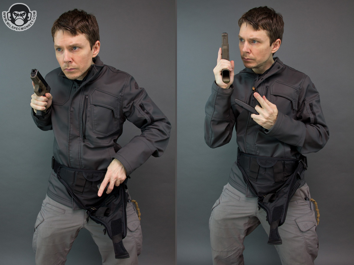 I'm not sure why I never considered it with waist bags before, but after seeing some example pictures, the Flash also works great worn across the shoulder. As an attempt to save idea face, I think the 2" wide main strap may be a factor where usually straps are pretty thin on these style bags. The shoulder mount works great If worried about slapping your nuts while running in waist worn mode and can lay under ones arm very shoulder holster like. When it comes to getting down to business and busting a pistol out, the Flash offers a nice wide opening however it takes a little getting used to since the angle will be a bit different than a traditional holster. The angle is pretty nice and open which is good, it is just different than where I'm used to going for. After a tear open on the main compartment it also makes something along the lines of a tactical shelf since the majority is open which makes the accessory zones accessible just in new zones when it comes to my personal muscle memory. Even if the compartment opens up all the way hanging down, usually the elastic has enough grip to hold onto your accessories, however this will put the items in a lower position accessibility wise. Time permitting one can slap the pull tab to the hook and loop to get a quick closure as a worthwhile gear management option.