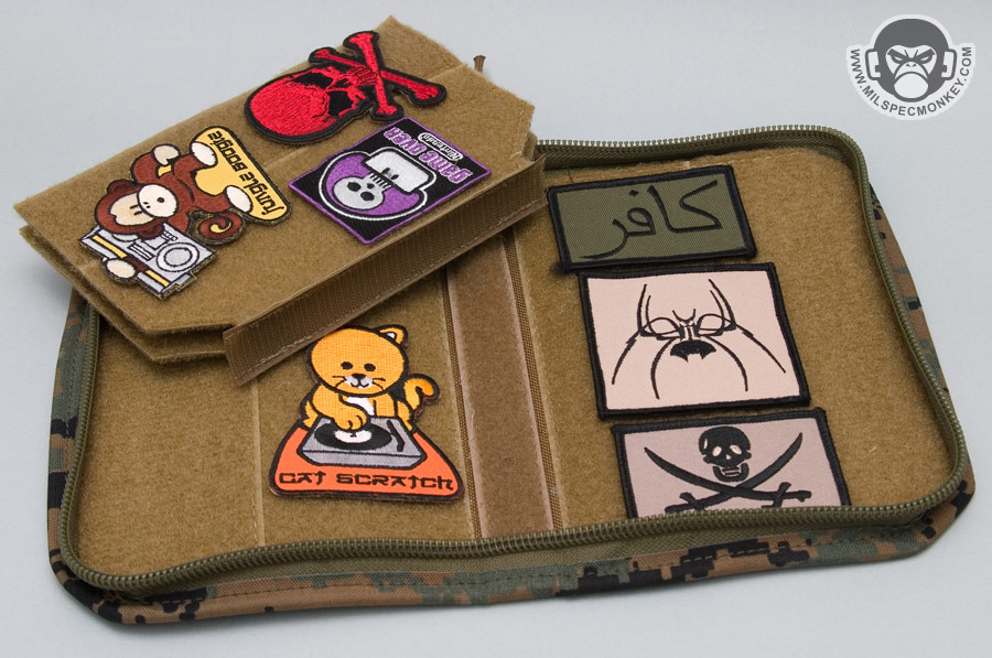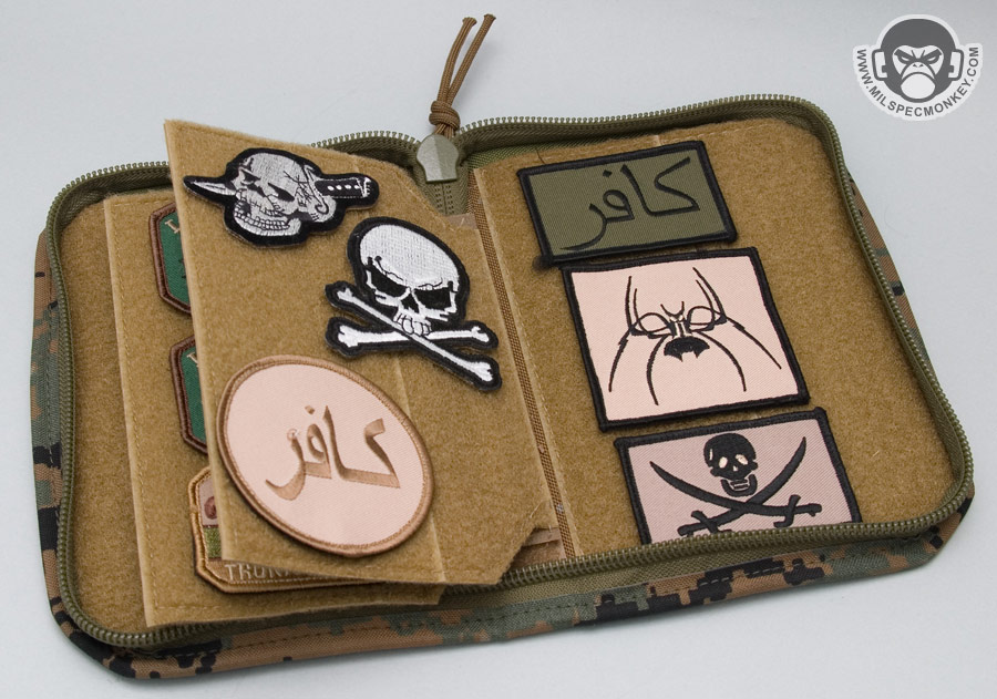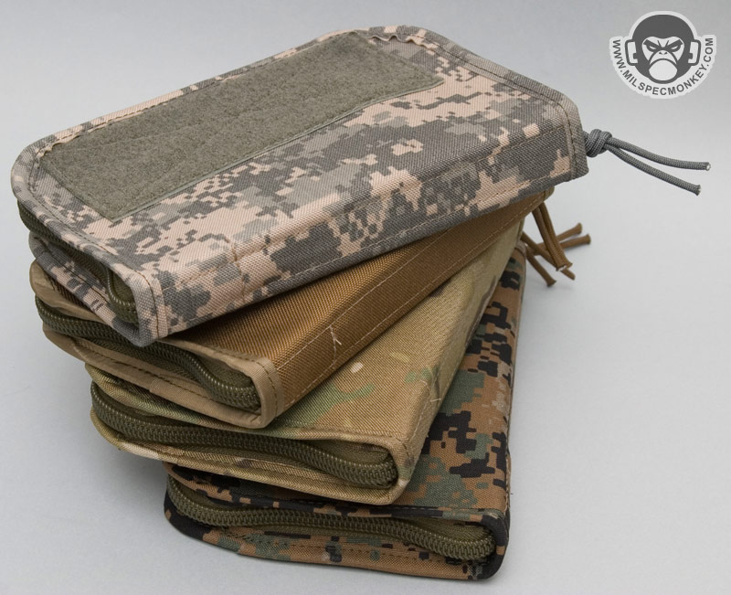 With morale patches not going away anytime soon, Esstac has made a nice patch case for those with collections. The pouch is more of a slim design, but nicely zips up and feels rugged as all Esstac gear. The exterior front has loop velcro for ID or your favorite patch and then the inside is loop city. The interior sides are all loop, but are also sleeves in which extra patches or spare velcro can be stored. The middle has a removable 2 page pannel that is slightly smaller to make closing the pouch easier. A 3 page pannel can be made on request, but when you fill the pouch full of patches, the standard 2 pages is a good fit. One could even use the pouch for other uses by taking out the pannel and using velcro based pouches. Perhaps a nice modular toolkit pouch. Available in UCP, Multicam, Coyote, and Forest Marpat.