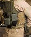 This creates a wedge effect on the opening where the FASTMAG can be bent to open, but will keep constant pressure on your mag. The material is made from similar goodness the MOLLE frame is made of which is very strong, temperature resistant, and reasonably flexible. If shot or destroyed the polymer has anti-fragmentation qualities as well and will not turn into shrapnel. For additional pressure, an elastic band wraps around the exterior, which can be removed for easier magazine removal. To enhance the grip, 2 rubber-like friction pads are inside the pouch with 1 on each side. The core snap connection has a dual purpose in which they are also snaps for the PALS straps. Although these are not made to weave, they will allow the FASTMAG to be placed on any PALS webbing equipped gear. At the top are 2 PALS stabilizer tabs to keep pouch movement low when twisting and using the FASTMAG. When mounting the pouch, first the tabs are inserted under the PALS, then the straps are routed to the snaps at the bottom. The tabs do a good job at keeping the FASTMAG stable on your kit, but also can make the magazines a little harder to grab onto since so close to one's body. If this is the case, you can still securely attach with PALS straps only. Thing will be a little more floppy, but easier to get a grab onto the mag.