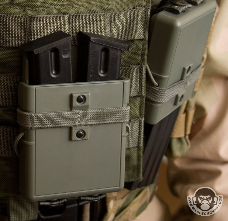 When using the FASTMAG one should grab the magazine inside and give a horizontal twist while yanking out with authority. The twist causes the friction pads to be pushed away from the magazine to allow an easier release. I find the upside-down mounting direction to be the fastest since it requires less wrist movement to grab onto the magazine. Effective mounting areas include the lower chest / sides, belt, and droplegs, but other users may find other mounts useful as well.