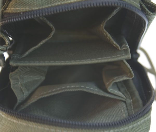 Notes: Fairly small pouch, but good divisions. OD has more of a smoke green color than most gear. Depending on where you buy, Malice Clips are not always included. Solid lil' pouch for your belt or even as an small admin pouch.