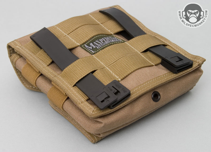 The back has larger than usual PALS channels to allow the user to fudge between using 3 or 4 PALS channels to mount using 2 long Malice Clips. Although this pouch was made with intent to be chest mounted on one's kit, it can also function well as a general multipurpose / organizer pouch on other locations and gear. It is slim enough to mount on the side of a vest, and works well on backpacks and shoulder bags with PALS webbing.
