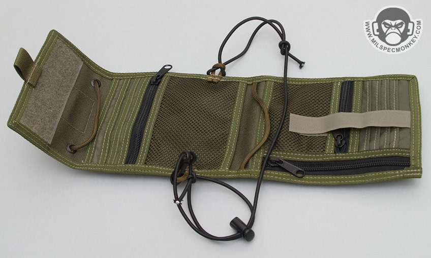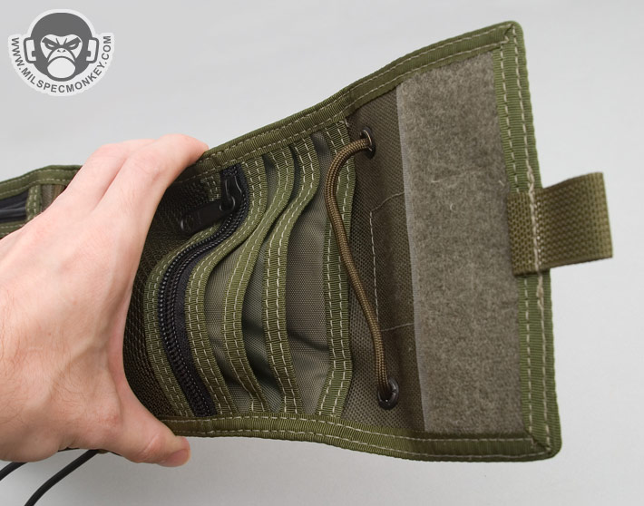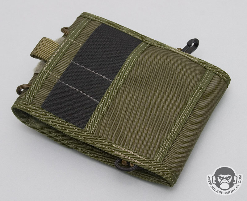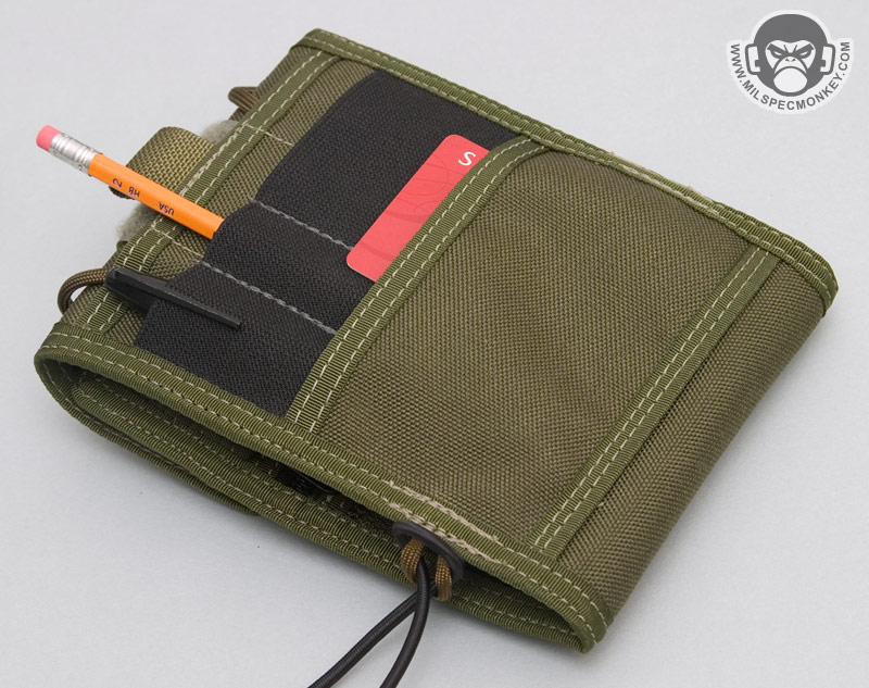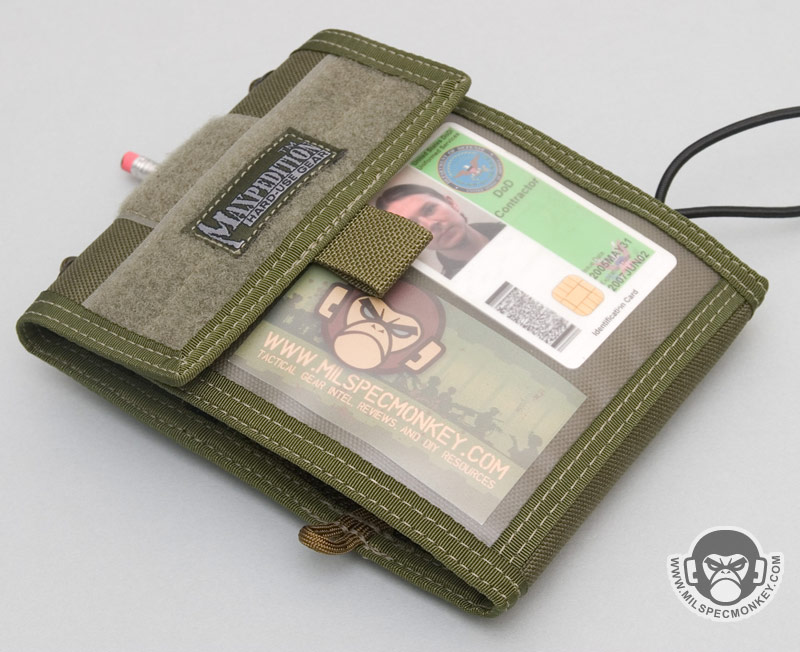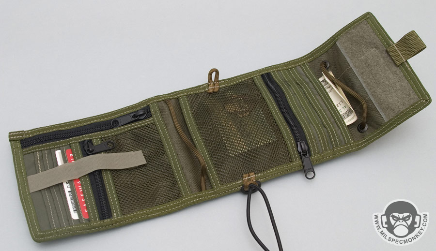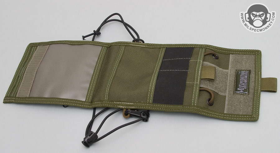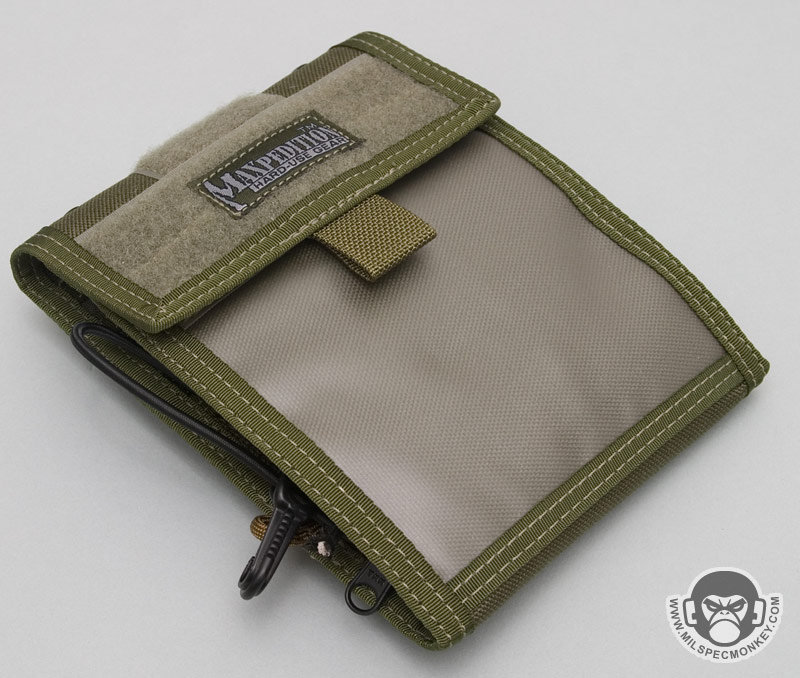 The main difference, however is that the Deluxe version is a folder so the inside unfolds to reveal many wallet-like organization slots. Some features include 3 zipper pockets with 2 mesh areas, large cord loop for a tie-down point, and MANY slim pockets. One side has a velcro strap to help secure insides. If you don't like or need it, one can tuck into a pocket or cut off. This side appears to be designed for mostly wallet needs with the card slots. The other side is more multipurpose since the pockets are much deeper allowing storage of odd shaped papers. Almost anywhere in the interior makes for a good place to put one's money or small pieces of paper. Another small change is the main ID clear pocket and the slim pockets above it, have a thin velcro security strap. I had this tucked in on most of my pictures since items seem plenty secure when the main flap is sealed. Personally, I would have put the maxpedition logo on the back rather than all up in my velcro loop space. For those who like the features of the original Traveler, but would also like built in wallet features, check out this Deluxe version.