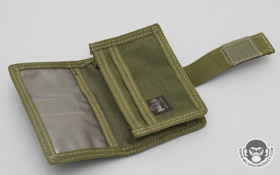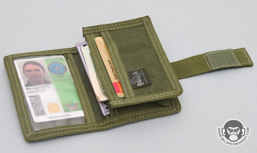 Similar to the Micro wallet, but has more depth in the money slot pocket. Inside there is a clear vinyl (diffused) area for ID and 2 slots on the other side. The larger of the pockets can hold up to 15 business cards or a nice wad o cash. I don't have it to test, but slim cell phones like the Motorola Razr are claimed to fit in this pocket as well. Like the Micro, the exterior has a slot pocket, but the Urban also includes a webbing strap with velcro connection to secure the wallet when packed full. The Urban works well as a slim wallet, but has more room to expand when required.