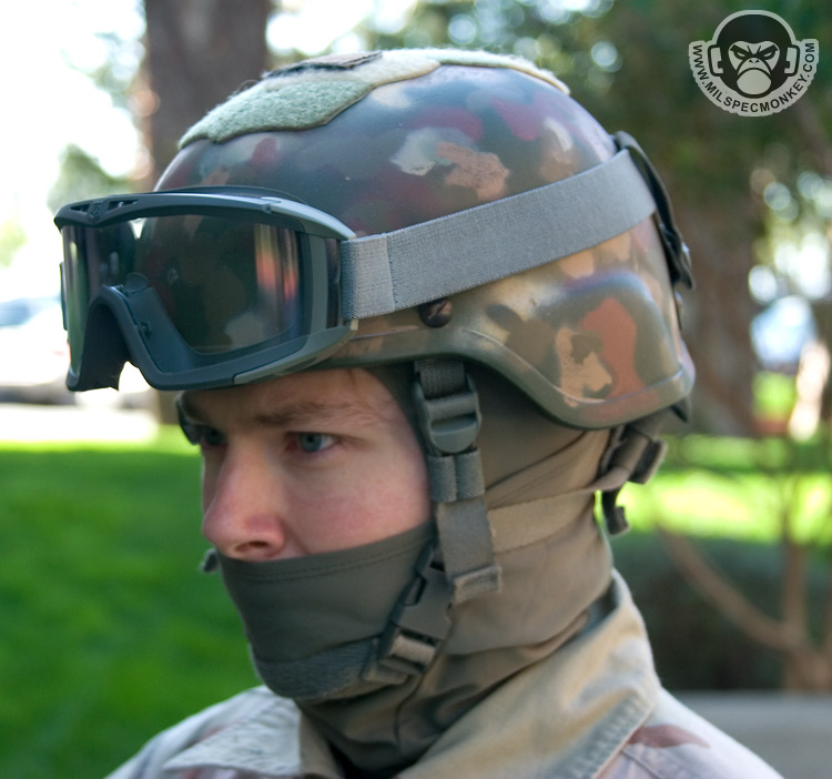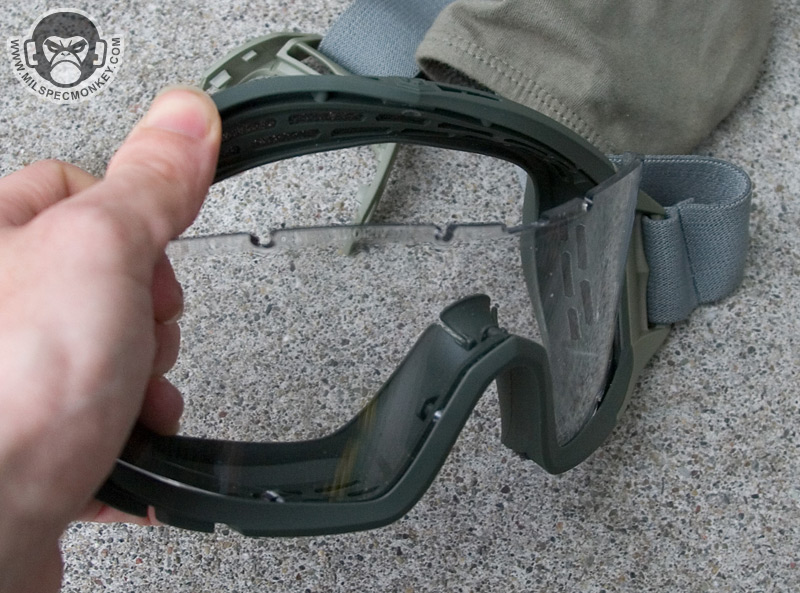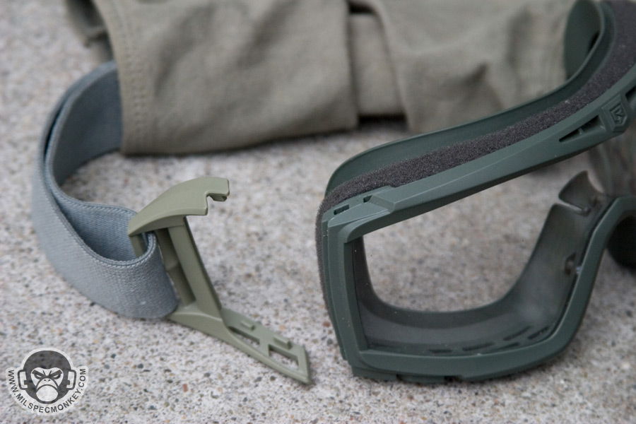 Just pull up on the frame and the rest is easy. I worry it may be too easy and perhaps the frame can start to become un-attached on accident, but I have had no issues yet. Just in case you didn't know, most lens changing on goggles is balls hard. The strap detatch is also fairly easy and can be done by twisting the end piece away from the frame. Re-attaching is a little harder, but nothing dramatic. The seal against the face is just a rubber-like material, but still comfortable. The nose area does not push in on my nostrils at all like the Flakjaks do a little due to its padding. The Desert Locusts fit great with a MICH and just barely touch the rifle when aiming with a fully collapsed M4. I can get a nice sight picture without feeling the goggles fighting against the rifle to get my face where it needs to be. Although these are not made to wear with glasses, prescription inserts are available. I hope to update with a vicious fog test soon. The DLs have anti fog coating and foam covered vents, but thermal lenses are not available yet. Check out the revision site for all the detailed technical specs:
