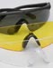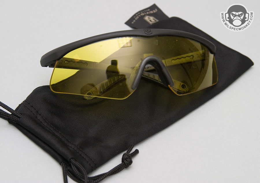 The Sawfly Glasses aren't exactly new, but that doesn't make them any less great. They meet and exceed all the Military ballistic requirements and thus have become US military approved eye-pro. I display here which appears to be the "Deluxe" Kit with a Soft carry case. The frame part is semi-flexible with adjustable arms. The arms have 5 positions which allow adjustability to most heads.