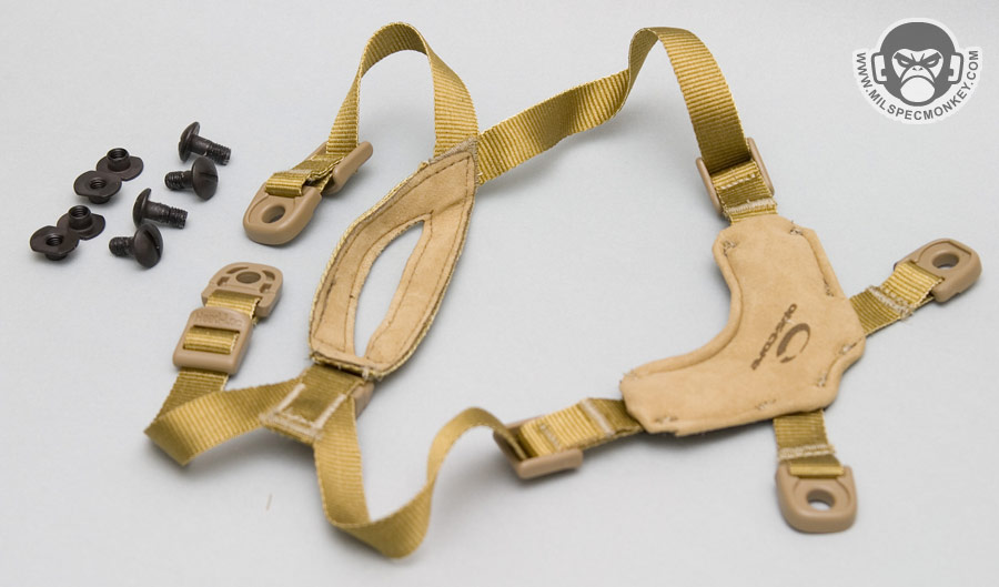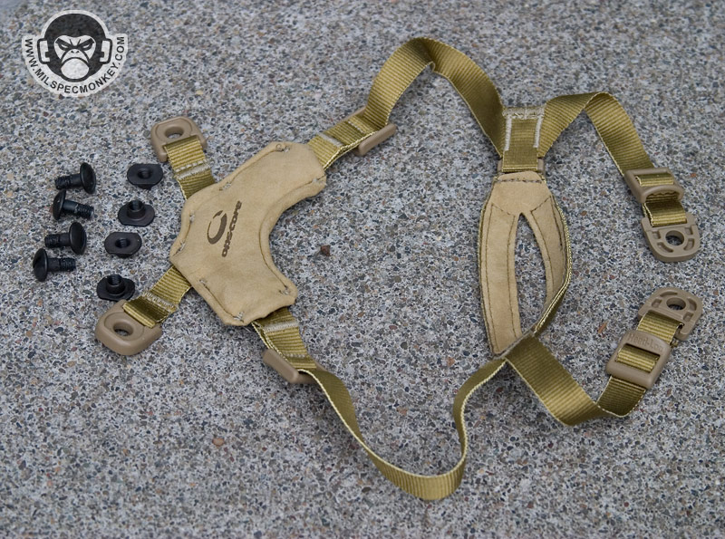 The bulk of the Ops-Core strap is made of Nomex so you can count on fire resistance when disaster occurs. The creator wanted me to note the desert color shown is more golden than he would like and this is not the final color. As you may have guessed, Nomex color selections aren't as vast as typical milspec webbing. Besides the ease of use, the Ops-Core strap is much more stable as well. For those with NVGs or those who just like to headbang, you will appreciate the improvement. I've been trying out the X-strap version, but apparently the H-strap version has even more stability. Both are offered since some will like the fit and feel of the X-strap version more. Installation is easy just like the standard MICH strap. The Ops-Core strap is currently available in sizes of S/M and L/XL and colors of Foliage Green, Urban Tan, and Black. Both versions can be purchased with main buckle on left or right side and a 3" extension strap is now available for use with gas masks. Here is a link to the shotshow vid if you missed it: <OPS CORE DEMO>