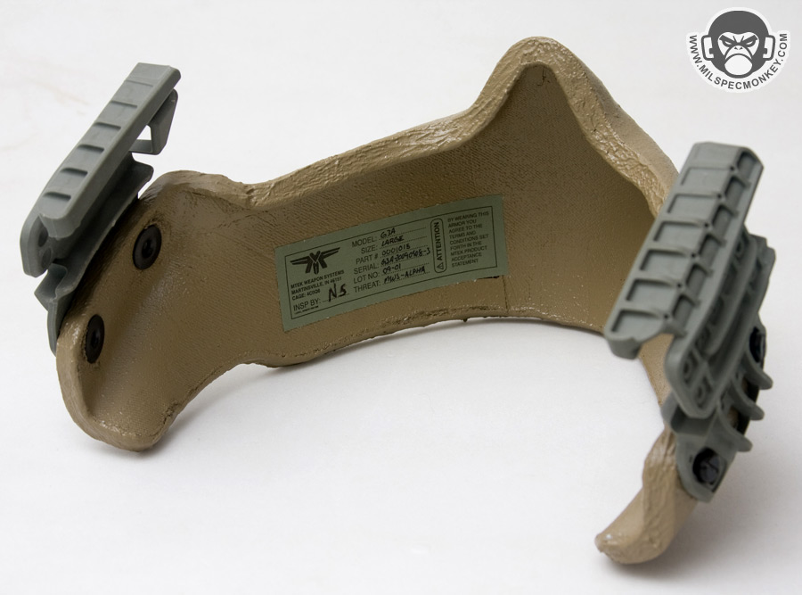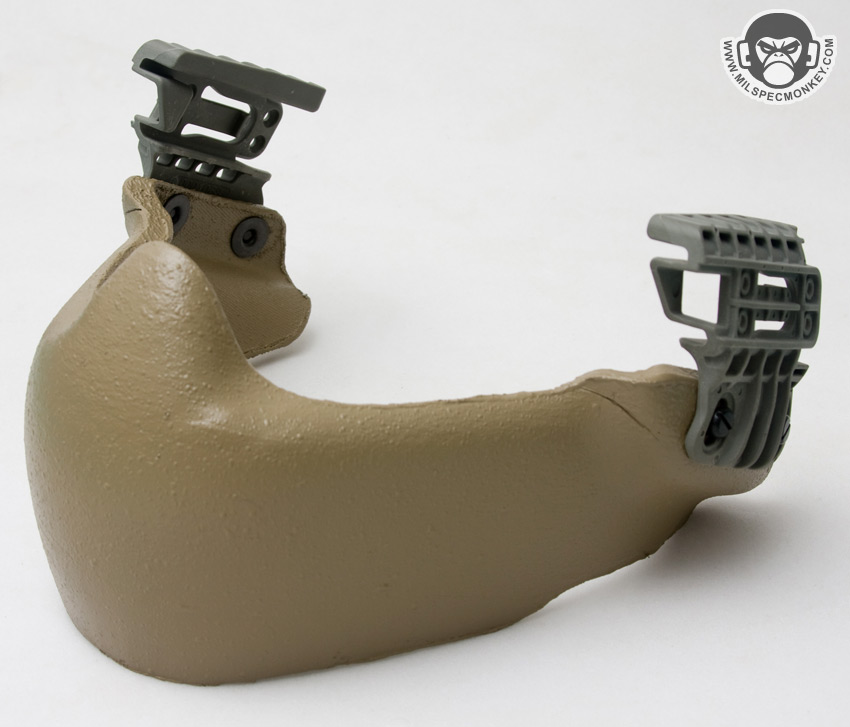 To mount either of these MTEK came up with a snassy attachment system they call the VERSA rail. Mostly made of polymer, they are lightweight while being quite durable at the same time. They attach on the sides of the helmet and have been designed to go on the vast majority of helmets in use these days such as the ACH / MICH, but still work on older PASGT helmets. To use, the attachment in this case facial armor, is slid back on the rails until locked into place. To release, two generous sized buttons are on the back of the VERSA system. Hardware is included so mounting is possible right out of the box. Although most helmets and straps will be compatible, I was unable to get the supplied hardware to interface with my OPS-Core chin strap. Taking items off is certainly easier than putting on, but with practice it does become easier. The main thing to learn is how to angle your own hands while inserting to make sure the rails line up. Another cool thing about the VERSA rail is the possibilities for the future. This quick on/off system would be very practical for helmet lights, cameras, and similar tactical accessories.