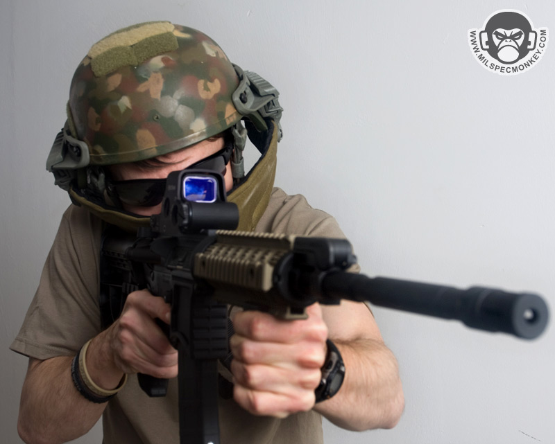 The end result appearance is a bit bulky, yet I feel it is justified. A more streamlined approach would require a specific helmet with no on/off ability and as a practical standpoint, adding 3 inches-ish to your helmet width is not a big mobility issue. During my use so far, I didn't get the feeling I was banging into my environment any more than usual and didn't have weapon sling snagging issues. I'd like to note the G3A is usable with a rifle, just the checkweld will cause a helmet shift. Perhaps not a comfy ride, but still an option. Depending on what you are doing, the mouth coverage restricting some air flow should be noted. As a roof gunner in a moving vehicle it is for the most part a non issue, but while running around on foot it is noticable that it is easier to breath without the armor on. Depending on the weather and eye protection you are wearing, fogging issues can be enhanced with either G3 armor package. The distance from the face makes the issue tolerable, and putting extra holes is not really an option as it would greatly reduce the protection strength on either variant. Overall I think MTEK brings some worthwhile armor options. It won't be for everyone, but for those who need more protection, these are a big upgrade from the old school ballistic hockey masks. I am also looking forward to see cool guy accessories for the VERSA rail.