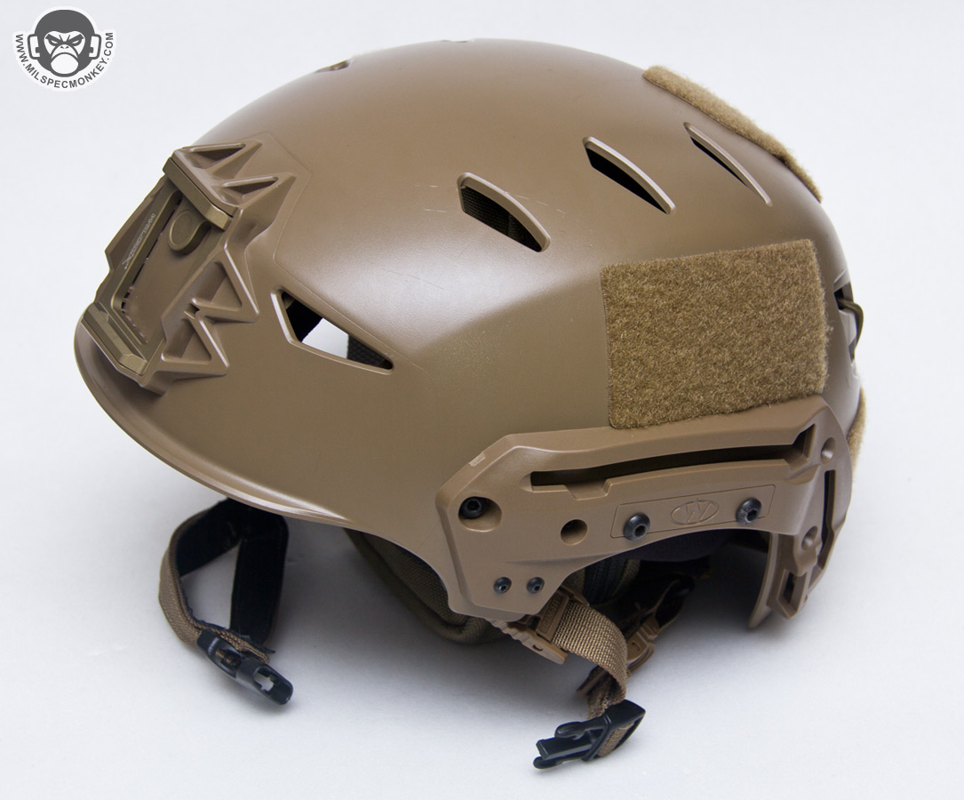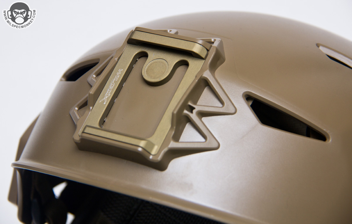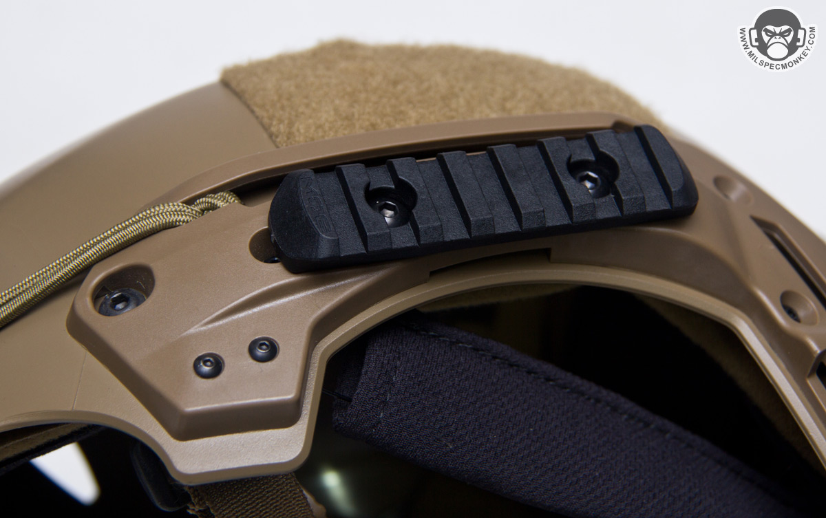 Protection aside, technology is becoming more important in tactical needs these days and the EXFIL helmet comes ready to go on mounting options. Starting off is the Integrated Wilcox W-shroud for NVG mounting; made of metal and straight up integrated into the helmet, one does not need to worry about any wobble here. On the sides are mounts for all kinds of sneaky helmet tricks. 2 Magpul MOE picatinny style rails are included to mount as desired and although not shown, a Rail 2.0 package is available to offer a small picatinny rail and goggle posts for interfacing with specific goggles to keep the back of the helmet free for other mounting. Comm headset adapters are also available to allow external mounting of ear-pro/comms making getting the helmet on and off a lot easier. And say you are so cool you are going to rock some HALO missions, there is even a slot for the specialized oxygen mask strap.