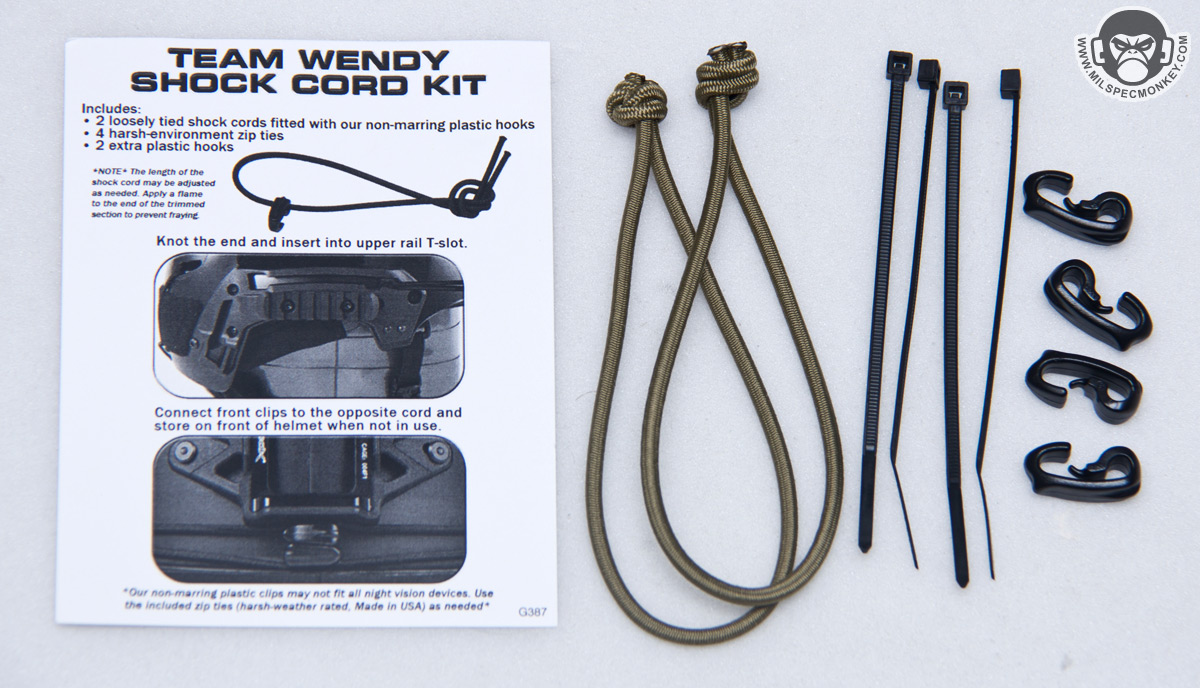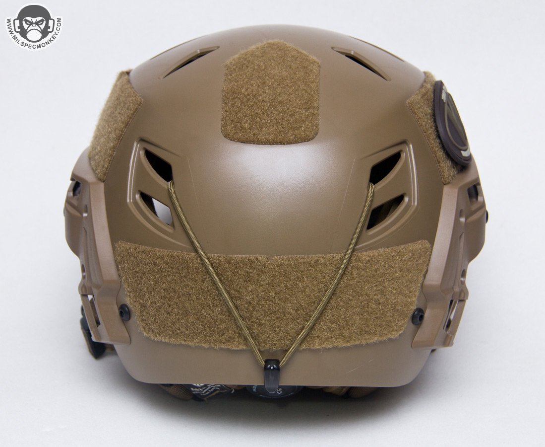Back to features included, the EXFIL comes with bungee hooks up front for NVG stabilizing and retention along with a similar shock cord/hook setup in the back to hold traditional goggle straps or generally securing back mount gear such as counterweights/battery packs. Me being a recent NVG newbie, I'd like to note there were no obvious connection points for the bungee hook to connect to the NVG mount or unit, so I suppose it is assumed one has to make their own with 550 cord or similar. Not done there, loop velcro is even mounted on the popular spots for holding patches, strobes, lights, etc.. I prefer a bit more loop on the top and luckily the helmet cover addresses that which I'll get more into later.